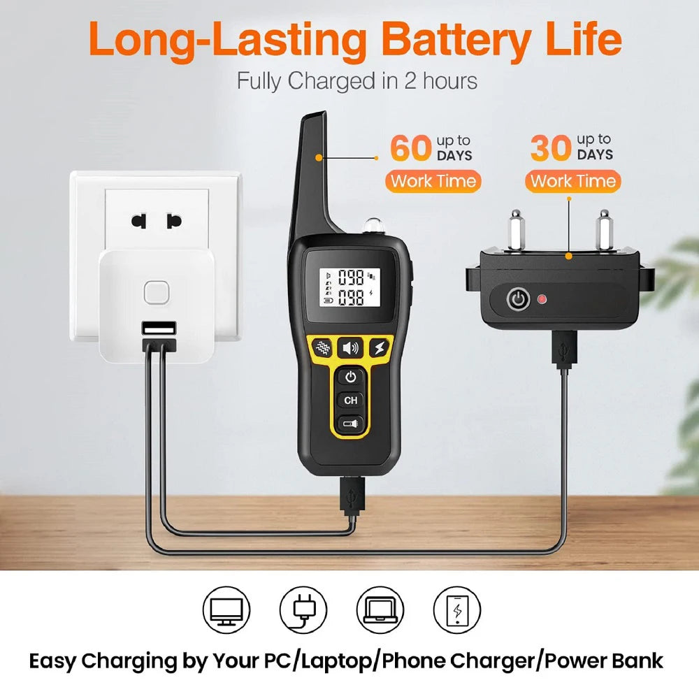 The collar features adjustable intensity levels, allowing you to tailor training to your dog’s size, temperament, and sensitivity. Built with a durable, waterproof design and a long-lasting rechargeable battery, it’s perfect for both indoor training and outdoor adventures—rain or shine.